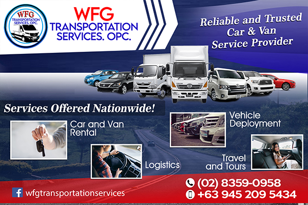 WFG Transportation Services, OPC is a privately owned company that provides transport services that includes car and van rental, logistics travel and tours and even vehicle deployment.